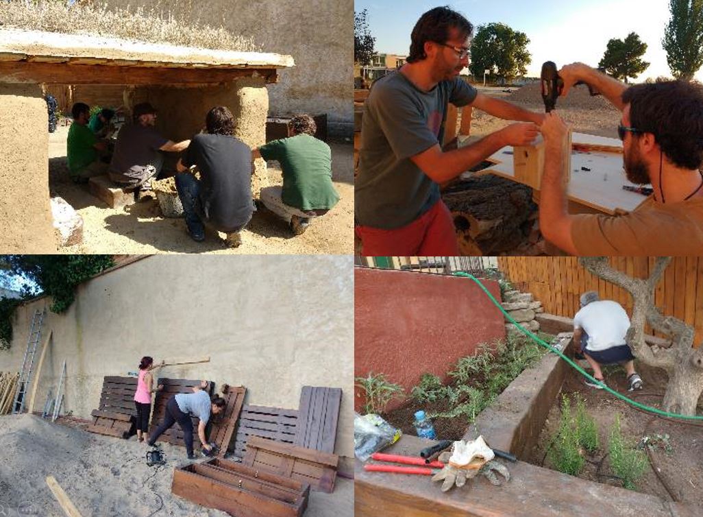 Algunos eventos que organizamos para financiar, los aprovechamos para formarnos y también para hacer algunas actuaciones en el patio. Tuvimos la oportunidad de que vinieran Heike Freire y Silvia Collado, hicimos la bioconstrucción, la rocalla, las cocinitas, aprendimos a hacer carteles, las casitas de los pájaros, aprendimos sobre plantas, la importancia de los insectos… Pero también cada vez que inauguras algo el cuerpo te pide parar, el grupo se reestructura.